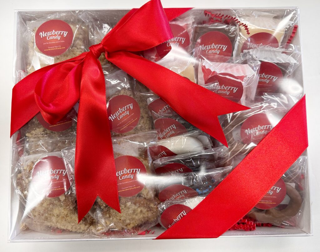 Looking for the perfect treat to share at the office, a meeting, or your next event? Our Newberry Candy Individually Packaged Gift Box makes sharing easy, clean, and delicious. Each box is filled with a variety of our handmade favorites, including assorted toffee flavors, assorted fudge flavors, chocolate-dipped Oreos, and chocolate-dipped pretzels—all individually wrapped for convenient grab-and-go enjoyment.